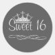 Sticker Rond Jolie couronne gris foncé doux 16 Anniversaire Sti