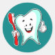 Sticker Rond Jolie dent Dent Cartoon avec brosse à dents