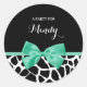 Sticker Rond Jolie Giraffe Imprimé Monnaie Vert Bow avec nom
