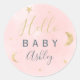 Bonjour bébé ! La lune d'or mignonne le baby shower d'aquarelle rose.