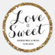 Autocollant personnalisé paillette or l'amour est doux. Vous pourrez facilement personnaliser avec des noms et la date. Il y a un motif de paillettes dorées autour de ce magnifique autocollant l'amour est doux. Cela apporterait une touche scintillante à votre beau mariage, douche, anniversaire et plus encore.