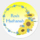 Feuille d'autocollants Rosh Hashanah, ce design présente un arrière - plan jaune et blanc à l'ombre. Il y a une couronne de tournesol décorative fleurie bleue et verte. "Rosh Hashanah" est écrit à l'intérieur du graphique. Achetez votre feuille autocollante dès aujourd'hui ! Oeuvre créée par : AMBillustrations http://www.etsy.com/shop/AMBillustrations