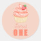 Sticker Rond Jolie UNE, robe rose pour le premier anniversaire
