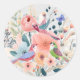 Sticker Rond Jolis Oiseaux Floraux Aquarelle Printanière Pastel