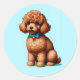 Sticker Rond Jouet Brown adorable avec Arrière - plan bleu