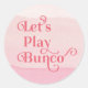 Le design est parfait pour les joueurs amusants de Bunco. Différentes nuances d'arrière - plan couleur rose. Accentué par une police moderne qui dit : Jouons à Bunco. Cet autocollant amusant peut être porté lors de votre prochain événement Bunco. Ou joignez-vous à vos invitations Bunco.