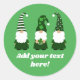 Ajoutez votre mot, slogan, texte ou mots amusants à cet autocollant de gnome mignon pour l'emballage cadeau, le sceau d'enveloppe ou l'artisanat pour enfants, hommes ou femmes. Trois adorables mignonnes et amusantes fêtes irlandaises St. Patrick's Day Gnomes tous habillés en vert. Jardin gnome elf leprechaun caricature les gars en bande amusante, quatre shamrock de trèfle feuille et casquettes de pois-pois. Festif drôle Irlande des cadeaux de Jour de la Saint Patrick de chance pour elle ou lui, fait un grand cadeau pour petite amie, femmes, dames, enseignants, garçons, filles, enfants ou n'importe qui!