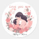 Sticker Rond Journée des mères de fleurs roses personnalisées