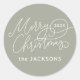 Sticker Rond Joyeuse calligraphie de Noël Élégant Sage Green