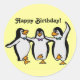 Sticker Rond Joyeuse fête d'anniversaire des pingouins dansants