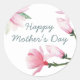 Sticker Rond Joyeuse fête des mères avec des Magnolias d'aquare