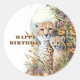 Sticker Rond Joyeuse Giraffe d'anniversaire
