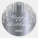 Sticker Rond Joyeuse parties scintillant d'anniversaire argent