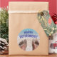 Autocollant joyeuse retraite drôle avec photo de pieds sablonneux sur la plage est idéal pour une fête de retraite ou un album photo.