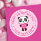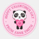 Autocollants mignons de la Saint-Valentin avec un panda de dessin animé tenant un cœur rose et le texte "Joyeuse Saint-Valentin" avec un nom personnalisé sur un fond rose. Utiliser comme sceaux d'enveloppe, autocollants pour cadeaux et faveurs, emballage de produits, artisanat et scrapbooking etc