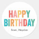 Sticker Rond Joyeuse Typographie colorée d'anniversaire