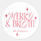 Un autocollant Festive et simple de Noël avec un texte typographique classique qui dit "Joyeux et brillant" avec des étoiles.