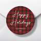 Sticker Rond Joyeuses Fêtes à carreaux rouges et noirs |