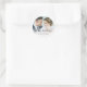 Joyeuses Fêtes des jeunes mariés avec superposition de photo Nom et Année. Célébrez votre premier Noël de jeunes mariés avec ces autocollants pratiques pour vos envois postaux festifs, cadeaux et faveurs ou peut-être utilisez-les pour vos faveurs lors de votre mariage d'hiver ! Un script d'ensemble moderne pour Joyeuses Fêtes et facile à personnaliser avec votre nom et l'année et remplacer la photo d'exemple avec votre préférée. Une couche de superposition de dégradé est au-dessus de votre photo de sorte qu'elle s'estompe à mesure qu'elle atteint le bas avec le texte partiellement superposé dessus.