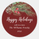 "Joyeuses fêtes !" Sticker rond classique en Aquarelle Pine Noël.