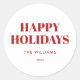 Sticker Rond Joyeuses Fêtes rouges et blanches modernes