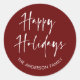 Joyeuses fêtes modernes Noël noir rouge et blanc Sticker rond avec script Calligraphie et Nom de famille