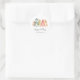 Des autocollants simples et élégants pour vos cadeaux de Noël et la correspondance avec une aquarelle abstraite de pins en vert sauge muet, rouge, or et orange, "Happy Holidays" dans un script élégant et votre nom dans la typographie moderne.