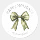 Happy Holidays Green Watercolor Bow Christmas Classic Round Sticker ajoute une touche festive et personnalisée à tout rassemblement ! Avec un arrière - plan blanc immaculé, les autocollants présentent une fine arête d'aquarelle vert olive sous le joyeux texte "Happy Holidays" et un nom de famille personnalisé, parfait pour apporter chaleur et style à votre table de vacances. Que vous organisiez une fête de Noël ou que vous partagiez des cadeaux autour de l’arbre, ces autocollants apportent un look charmant et cohésif, à la fois mignon et élégant. Parfait pour ajouter un détail personnel et réfléchi dont les amis et la famille se souviendront. Cliquez sur "Personnalisez ce modèle" pour ajouter votre nom de famille, faisant de ces autocollants un ajout festif et significatif à vos célébrations de vacances. 🦋 #generativecontent