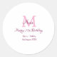 Sticker Rond Joyeux 21e Anniversaire rose ajouter nom monogramm