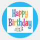Joyeux Anniversaire autocollants ronds classiques design couleurs image complète enfants avec gâteau