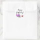 Sticker Rond Joyeux anniversaire avec des fleurs d'été violette
