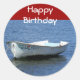 Petit bateau, reposant sur l'eau, présenté sur cet autocollant d'anniversaire, parfait pour une carte, une lettre ou un paquet, pour un ami ou un proche.