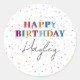Sticker Rond Joyeux anniversaire coloré Nom personnalisé Confet