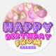 Sticker Rond Joyeux Anniversaire Du Nom Ballons Rose Purple Or