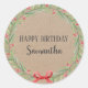 Sticker Rond Joyeux anniversaire Noël Floral Wreath Craft