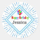 Joyeux Anniversaire Personnalisable Feuille d'autocollant. Vous pouvez modifier la forme (Conception) avec la couleur souhaitée. Cliquez sur "Cliquez pour customiser plus loin" pour changer de couleur. Le Jessica peut être changé à tout ce que vous voulez.