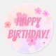 Sticker Rond Joyeux anniversaire Pink Flower Power