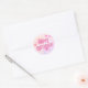 Cet autocollant présente une violette au champagne arrière - plan de pêche de la pêche derrière des fleurs roses et pêche, avec un personnalisable "HEUREUX ANNIVERSAIRE !" dans une police rose gomme en gras, avec un blanc blanc contenant un cercle.