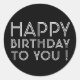 Sticker Rond "Joyeux Anniversaire Pour Vous !" Noir & Blanc