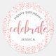 "Bon anniversaire". Voici un ajout unique à votre fête d’anniversaire ! "Célébrez" avec cet autocollant audacieux, étonnant et moderne pour un événement à retenir. Parties scintillant de calligraphie manuscrite, brillante, poussiéreuse, rose rose, et des points plus la typographie gris clair superposent un arrière - plan rayé rose et blanc poussiéreux. Personnalisez le texte personnalisé avec le nom de votre invité d’honneur. Choisissez une forme ronde ou carré. Garanti d'ajouter du plaisir élégant à sa fête spéciale! Des invitations assorties et coordonnées, des serviettes et d'autres cadeaux d'anniversaire sont également disponibles dans cette collection branchée et spéciale. Il suffit de taper le nom de la fille d’anniversaire et vous pouvez facilement personnaliser cet autocollant personnalisé. S'il vous plaît, envoyez-moi un message avec toute question ou demande.
