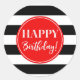 Sticker Rond Joyeux Anniversaire Rouge Noir Blancs