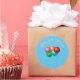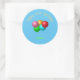 Cinq ballons d'anniversaire aux couleurs vives et deux lignes de texte personnalisé mettent en valeur ces stickers ronds personnalisés festifs Happy Birthday.