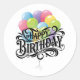 Sticker Rond Joyeux Balloons Rétro Card Anniversaire