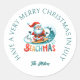 Sticker Rond Joyeux Beachmas Père Noël Surfing Retro Design