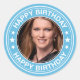 Sticker Rond Joyeux cadre photo d'anniversaire en bleu
