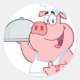 Sticker Rond Joyeux Chef De Cochon Tenant Un Panneau Plateau