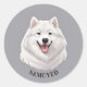 Sticker Rond Joyeux Chien Samoyé Blanc