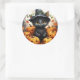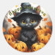 Sticker Rond Joyeux Citrouilles de Chat Noir Halloween
