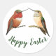 Happy autocollant de Pâques avec deux mignons Hummingbirds d'Allen. Dès que les premiers signes du printemps commencent à se manifester le long de la côte du Pacifique, on peut voir le colibri d'Allen vert et la colibri autour des mangeurs de colibris. Certains d'entre eux passent l'hiver au Mexique, mais d'autres restent dans le sud de la Californie toute l'année.