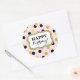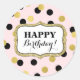 Joyeuse fête d'anniversaire pour les autocollants d'étiquettes en rose pâle avec des confettis noir et or, s'il vous plaît noter que la parties scintillant est un effet photographique seulement.